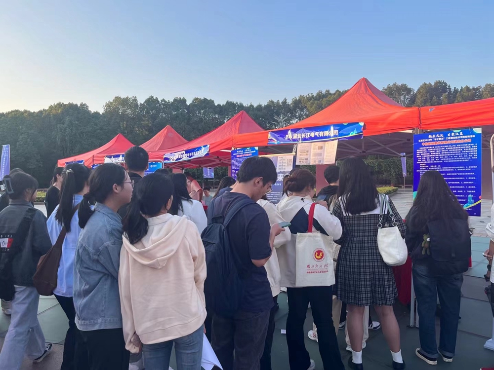 活动举行的同时,长江电气的工作人员正在重庆工商大学招聘展台向学生答疑解惑。“从早上9点到下午2点,启动仪式早已结束了,但是在展台咨询的学生一直络绎不绝。”彭易回忆说,“当天现场收到的简历有500多份。除了现场毕业生投的简历,还有线上投递的,活动累计收到千余份简历。”