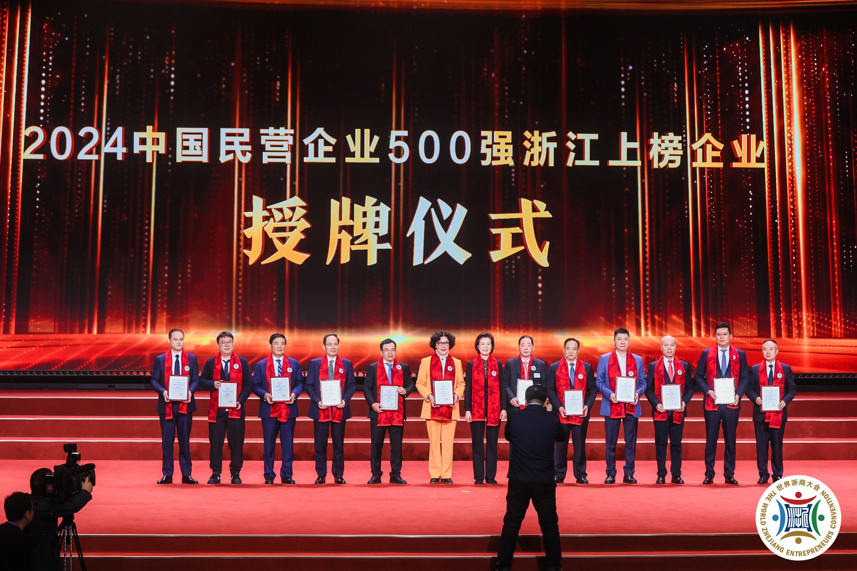 中央统战部副部长、全国工商联党组书记沈莹为上榜“中国民营500强”的浙江企业代表授牌。
