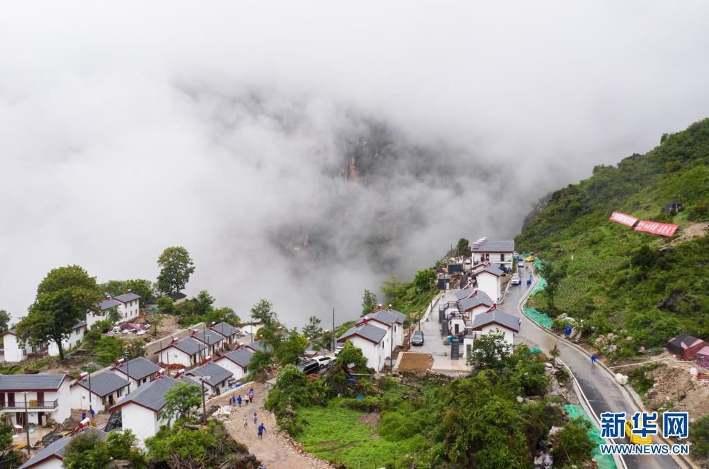 2020年6月30日,一辆客运面包车行驶在四川凉山州布拖县阿布洛哈村新完工的村道上(无人机照片)。新华社记者 江宏景 摄