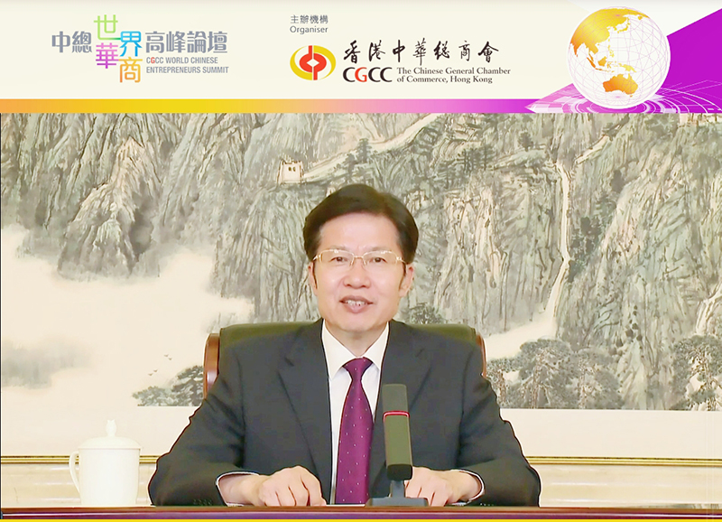 2021年6月17日,由香港中华总商会主办、以“连系大湾区 辐射‘一带一路’”为主题的“2021中总世界华商高峰论坛”在香港以线上线下相结合形式同步举行。全国政协副主席、全国工商联主席高云龙以视频形式出席论坛开幕式并作主旨发言。