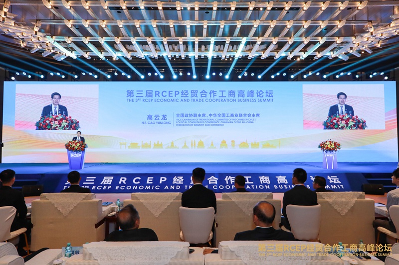 高云龙指出,中国将继续坚定不移推进高水平对外开放,进一步扩大制度型开放,对标RCEP规则标准,不断完善法律法规,持续打造市场化、法治化、国际化营商环境。中国市场潜力巨大、发展前景光明,必将在开放中为各国提供新的机遇,为工商界带来广阔空间,为全球发展注入强劲动力。他强调,工商界是引领和推动亚太发展的重要力量,要秉持开放理念,坚定支持、积极推动各国敞开合作的大门,共同构建开放型世界经济新格局;要加强团结合作,凝聚亚太地区高质量发展新力量,促进RCEP务实合作提质增效;要加快创新步伐,激发经济增长新动能,推动企业技术进步和产业升级,推进科技同产业深度融合;要发挥商协会作用,拓宽经贸合作新渠道,引导企业充分把握RCEP全面实施带来的机遇,切实增强企业受惠面和获得感。