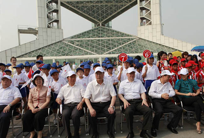 开营仪式上,谢经荣副主席表示,两年前的今天,举世瞩目北京奥运会在鸟巢开幕,中国军团取得100块奖牌的骄人成绩,是靠全国人民上下齐心,携手同行才取得的。今天,我们同样在这里,欢迎来自河南、四川的100名小朋友到北京和上海举行夏令营活动,也是在社会各界的共同支持下才能得以进行的。两年前,我们用拼搏精神获得了奥林匹克体育竞赛的冠军,今天,我们的爱心和奉献也将会在未来赢取另一个冠军----这100个孩子十年后成为对国家有用的人才,将是给予我们最灿烂的金牌。