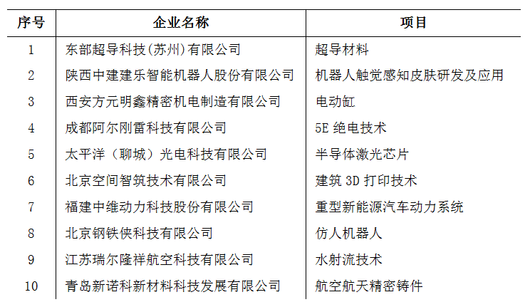 本次路演共筛选10家科技含量高、成长型较好的创成型民营企业参加,采取线上线下结合的方式,路演企业作10分钟现场展示,投资机构作5分钟现场点评及互动交流。企业对路演活动高度重视,东部超导科技、陕西中建建乐智能机器人、西安方元明科技、成都阿尔刚雷科技、北京空间智筑技术、福建中维动力科技、青岛新诺新材料、上海瑞尔隆鼎均由董事长或总经理推介。本次路演项目涉及超导材料、锂电池、5E绝电技术、建筑3D打印、机器人触觉感知皮肤研发、仿人机器人、半导体激光芯片、新能源汽车传动系统等领域。