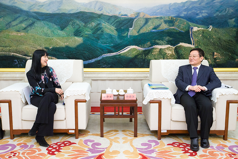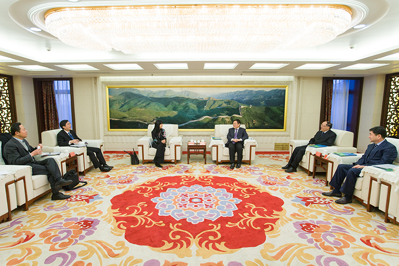 全国工商联副主席王永庆,全国工商联副主席,中国民营经济国际合作商会会长郑跃文,全国工商联联络部部长马君陪同会见。