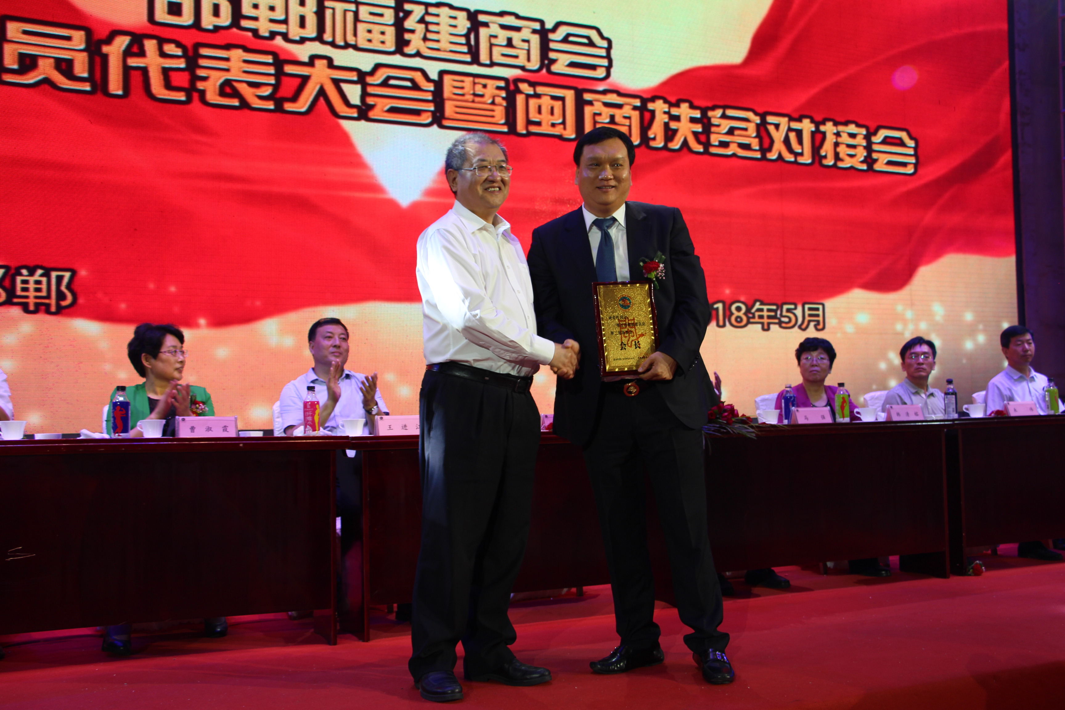 2018年5月26日,邯郸福建商会第二届会员代表大会暨闽商扶贫对接会在邯郸招商酒店大会堂隆重举行。福建省政协副主席、省工商联主席王光远;河北省工商联副主席马强;邯郸市政协主席王进江;邯郸市市委常委、统战部部长韩清榕;邯郸市政协副主席、市工商联主席曹淑霞;邯郸市委统战部副部长、邯郸市工商联党组书记来伟;兴华财富集团董事长、中联钢信电商公司董事长陈茂春及闽冀两地领导和各兄弟商会、顾问单位等嘉宾以及全体会员400多人出席大会。
