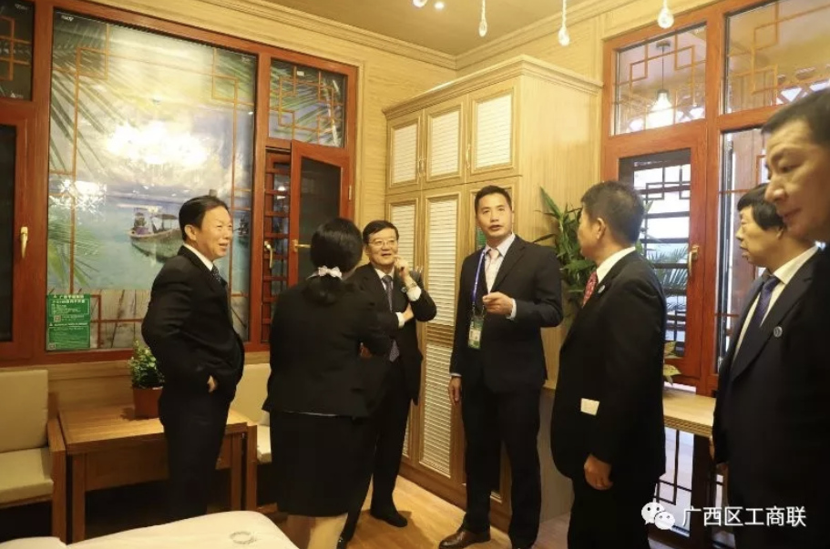 在建筑材料展区,领导们对广西平铝集团生产的全铝别墅和全铝家具很是赞赏,认真参观了解广西平果铝集团生产的“迷你铝屋”、钢化中空玻璃屋等。