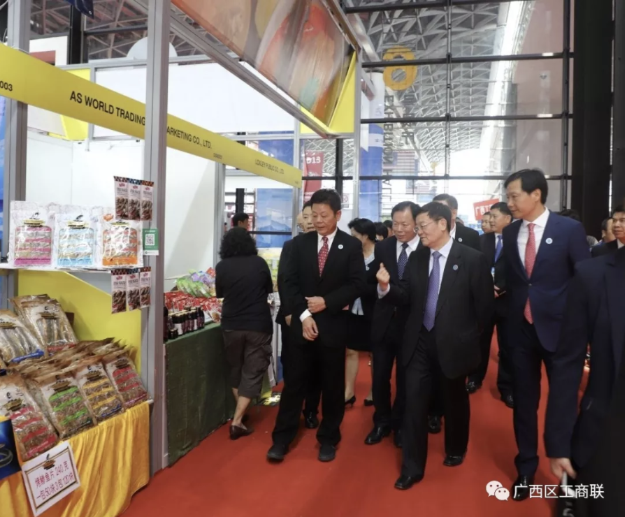 9月12日,中央统战部副部长、全国工商联党组书记徐乐江,全国工商联党组成员、副主席王永庆一行出席第十五届中国-东盟博览会暨中国-东盟商务与投资峰会开幕式,并在广西壮族自治区党委常委、统战部部长徐绍川,自治区政协副主席、工商联主席磨长英的陪同下巡视展馆。