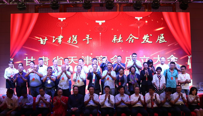 随后,甘肃省天津商会成立大会隆重举行,全国工商联副主席、天津市政协副主席、市工商联主席黎昌晋,甘肃省政协副主席、省工商联主席郝远,天津市援甘前线指挥部、甘肃省工商联、民政厅、教育厅相关领导,商会会员、甘肃省商会联席会成员单位代表、新闻媒体及各界人士200多人出席大会。天津市工商联副主席娄杰、商务联络部部长任竹梅、河北省天津商会会长张春静、北京天津企业商会秘书长杨明俊、天津市甘肃商会会长马爱琴、天津市金融投资商会常务副会长袁海旭、秘书长卢楠、副秘书长魏毅到会祝贺。