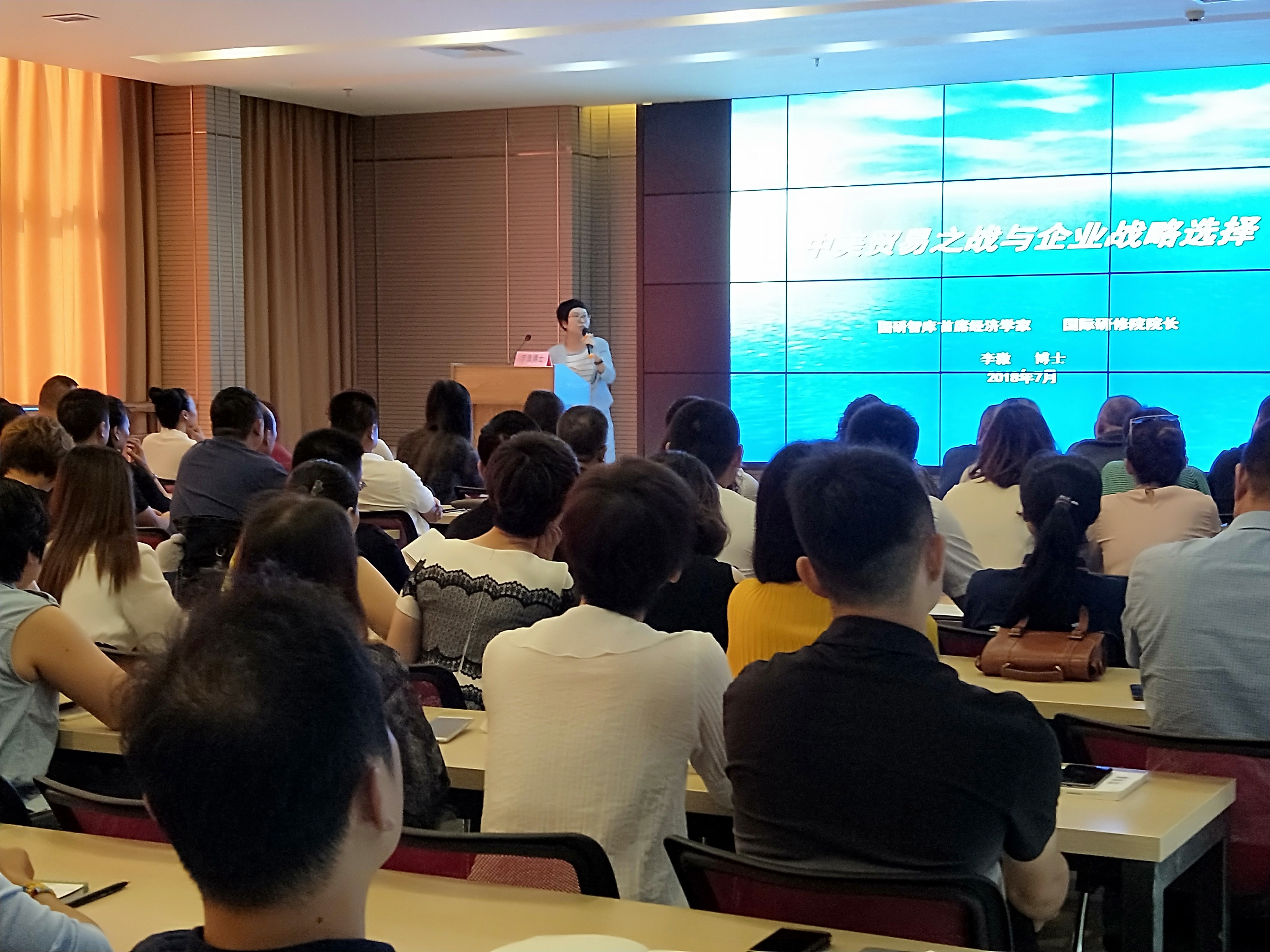 日前,由库尔勒市工商联主办的《中美贸易战与企业的的战略选择》知识讲座,在库尔勒市电子商务双创孵化基地307会议室举行。这次讲座,邀请了国务院发展研究中心下属国研智库首席经济学家兼国际研修院院长的李溦博士主讲。