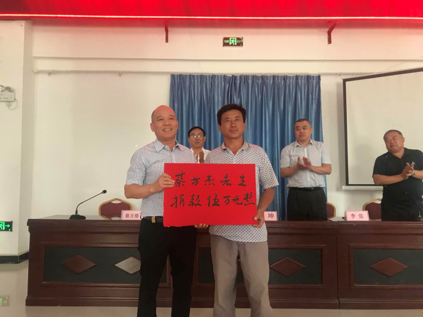 巴州工商联副主席、巴州浙江商会会长蔡方杰为博湖县才坎诺尔乡拉罕诺尔村扶贫捐款