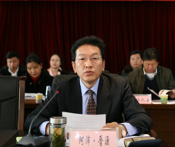 会议由自治区工商联主席、总商会会长阿沛?晋源主持。