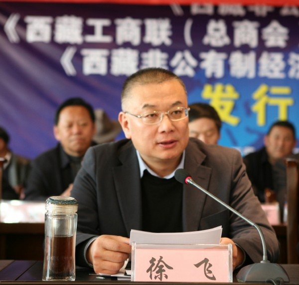 公保扎西代表自治区党委、政府向徐飞、李瑞富表示祝贺并指出,徐飞同志自2008年担任区工商联党组书记、总商会常务副会长以来,兢兢业业、呕心沥血,带领区工商联全体干部职工齐心协力,真抓实干,为推动工商联事业和全区非公有制经济大发展、快发展做出了很大贡献,同时在促进非公党建、非公经济界人士团结、教育与培养等方面也做了大量工作,成效明显,为西藏跨越式发展和稳定和谐贡献了力量,发挥了特殊的作用。