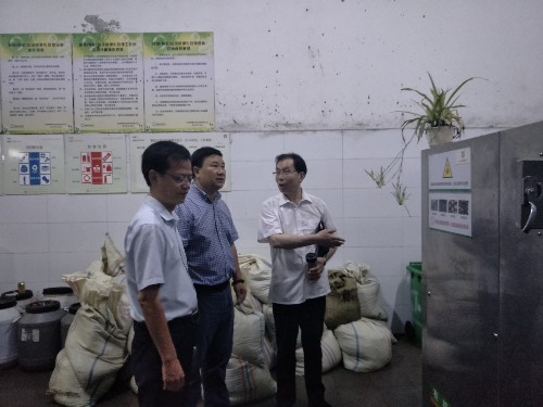 随后调研组一行前往杭州增霖环保科技有限公司实地察看生产设备。公司能够生产各种型号垃圾处理设备,适用在农贸菜市场、乡村有机垃圾处理站、城市植被、壳皮垃圾等处理。还将开发调试期的100吨垃圾规模处理系统,以适应大批量垃圾处理站点。
