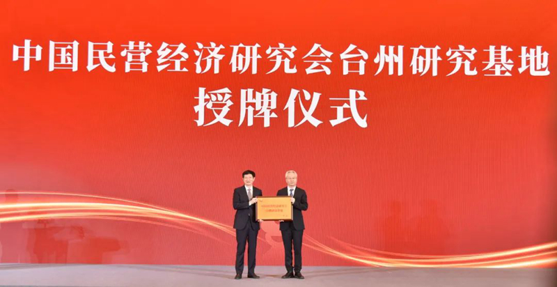 中国民营经济研究会原会长庄聪生,中国民间商会副会长、浙江吉利控股集团董事长李书福,中国民营经济研究会副会长、如是金融研究院院长管清友,传化集团董事长徐冠巨,中国民间商会副会长、中国民营经济研究会副会长、天津荣程祥泰投资控股集团董事会主席张荣华围绕“在党的二十大精神指引下凝心聚力”“在现代化新征程上再创新辉煌”“在推进共同富裕中担纲主力”等主题分别作主旨发言。现场举行了中国民营经济研究会研究基地(台州)授牌仪式,中国民营经济研究会会长李兆前为基地授牌;中国民营经济研究会发布了《2023中国百强产业集群(民营经济集聚区)研究报告》(相关报道详见02版)。会上还发布了《中国民营经济(浙江)高质量发展指数报告(2022)》《2021-2022年度台州民营经济司法服务指数》《2022年浙江省民营企业就业百强》《2022年浙江省民营企业社会责任100家领先企业》。
