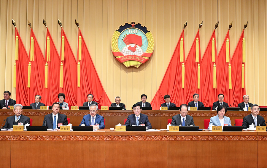 3月9日下午,政协第十四届全国委员会常务委员会第十一次会议在北京举行。中共中央政治局常委、全国政协主席王沪宁主持会议。新华社记者 岳月伟 摄
