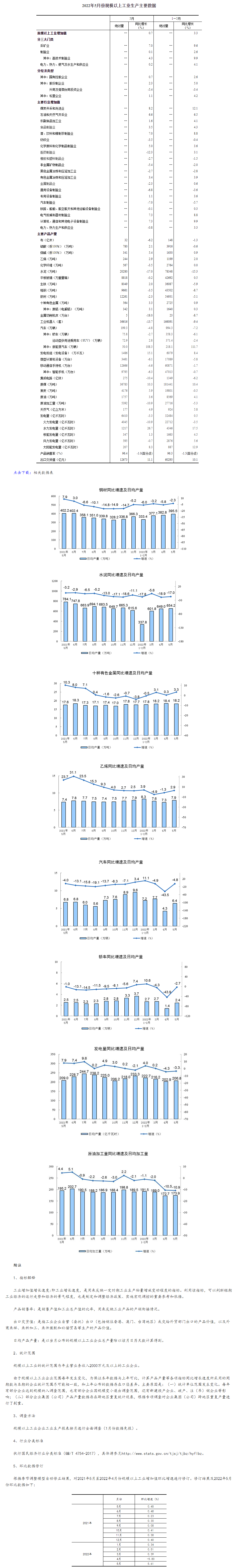 分产品看,5月份,617种产品中有256种产品产量同比增长。钢材12261万吨,同比下降2.3%;水泥20280万吨,下降17.0%;十种有色金属564万吨,增长3.3%;乙烯244万吨,增长2.9%;汽车199.3万辆,下降4.8%,其中,新能源汽车50.0万辆,增长108.3%;发电量6410亿千瓦时,下降3.3%;原油加工量5392万吨,下降10.9%。