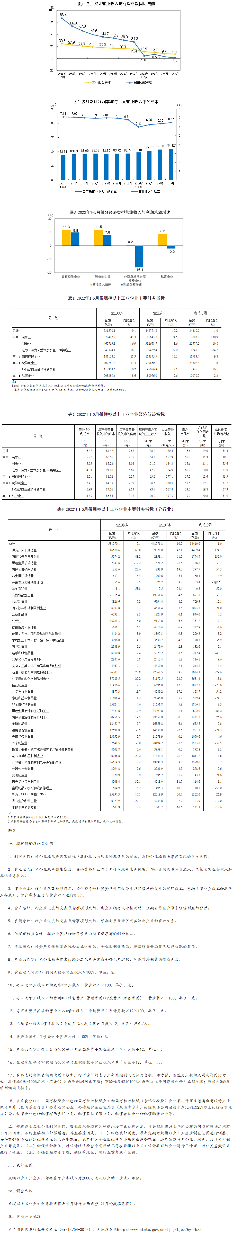 国家统计局:2022年1—5月份全国规模以上工业企业利润增长1.0%