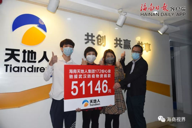 一方有难、八方支援! 2月6日,海南农业产业化国家重点龙头企业——海南天地人集团,心系疫情重灾区同胞的安危、关注抗战在一线的医护工作人员的健康,将企业员工的捐款51146元,通过海南省妇联,对接给了医用防护物资紧缺的湖北荆门第二医院,用于650套防护服的采买。