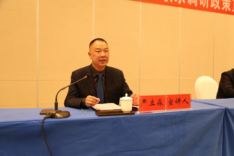 12月10日,全联执委、丽江正龙集团董事长杨四龙在巧家县作政策宣讲。县委县政府相关部门、民营企业家40余人参加。