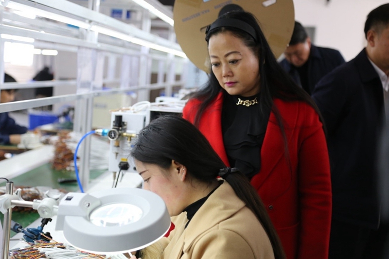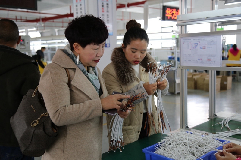12月11日,四川易田电子商务董事长滕德素(左一)在立时电子公司调研现场。