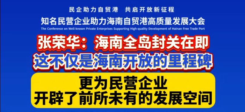 张荣华:海南全岛封关在即,这不仅是海南开放的里程碑,更为民营企业开...