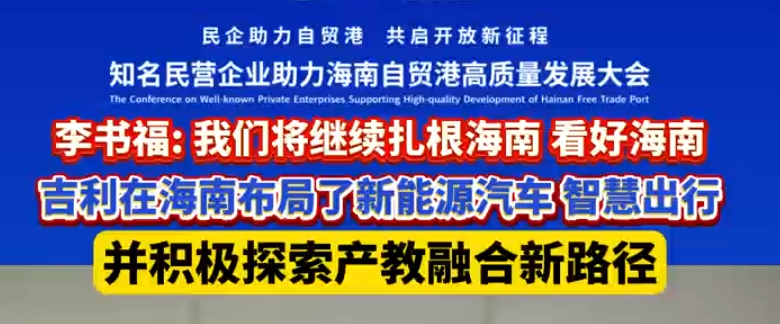 李书福:我们将继续扎根海南、看好海南,吉利在海南布局了新能源汽车智...
