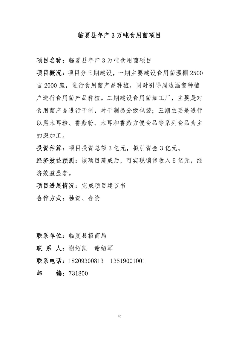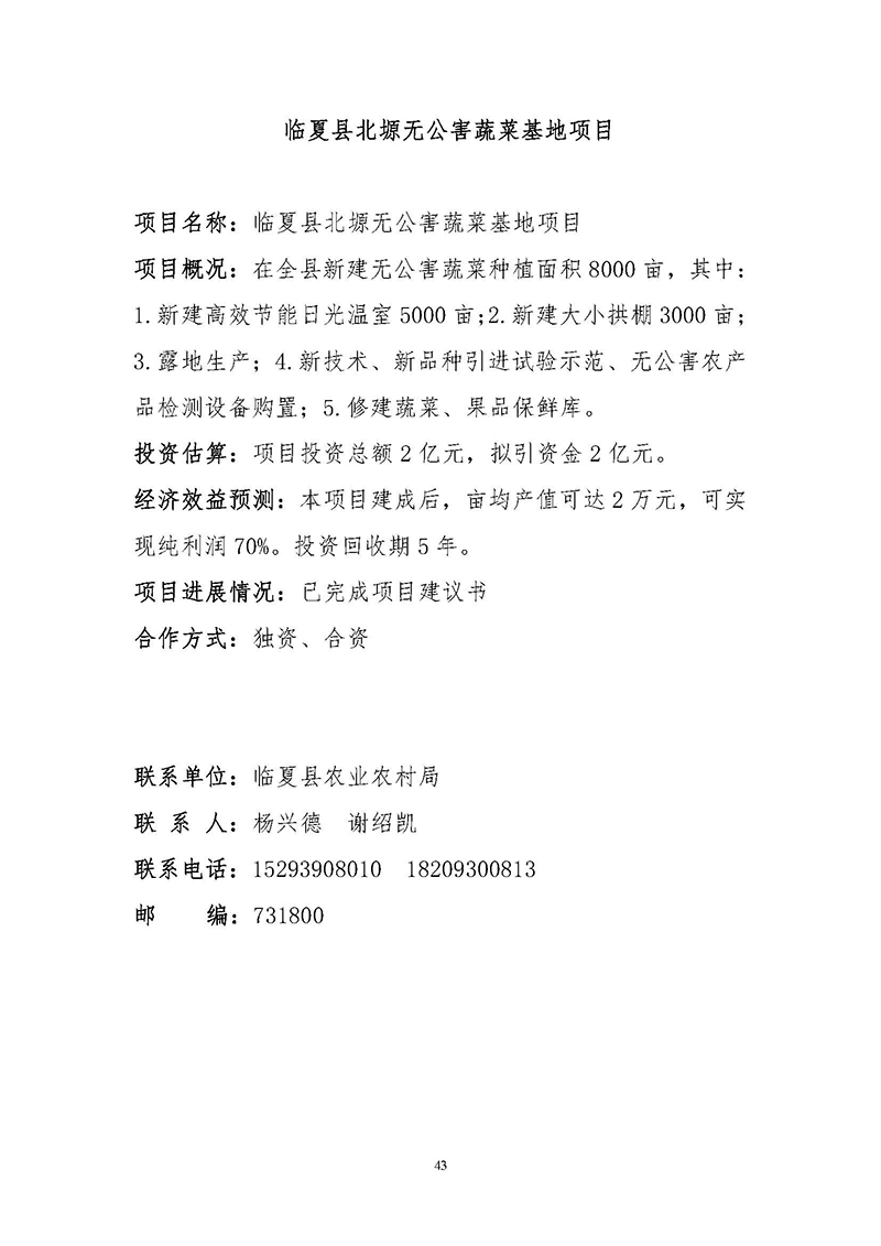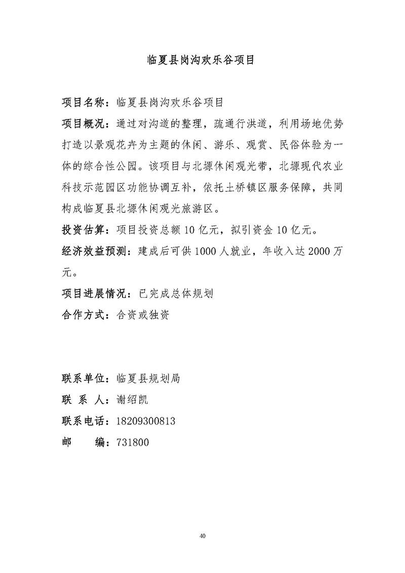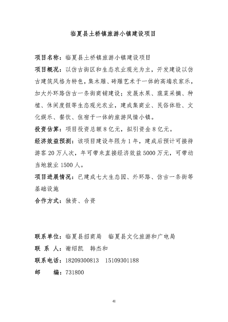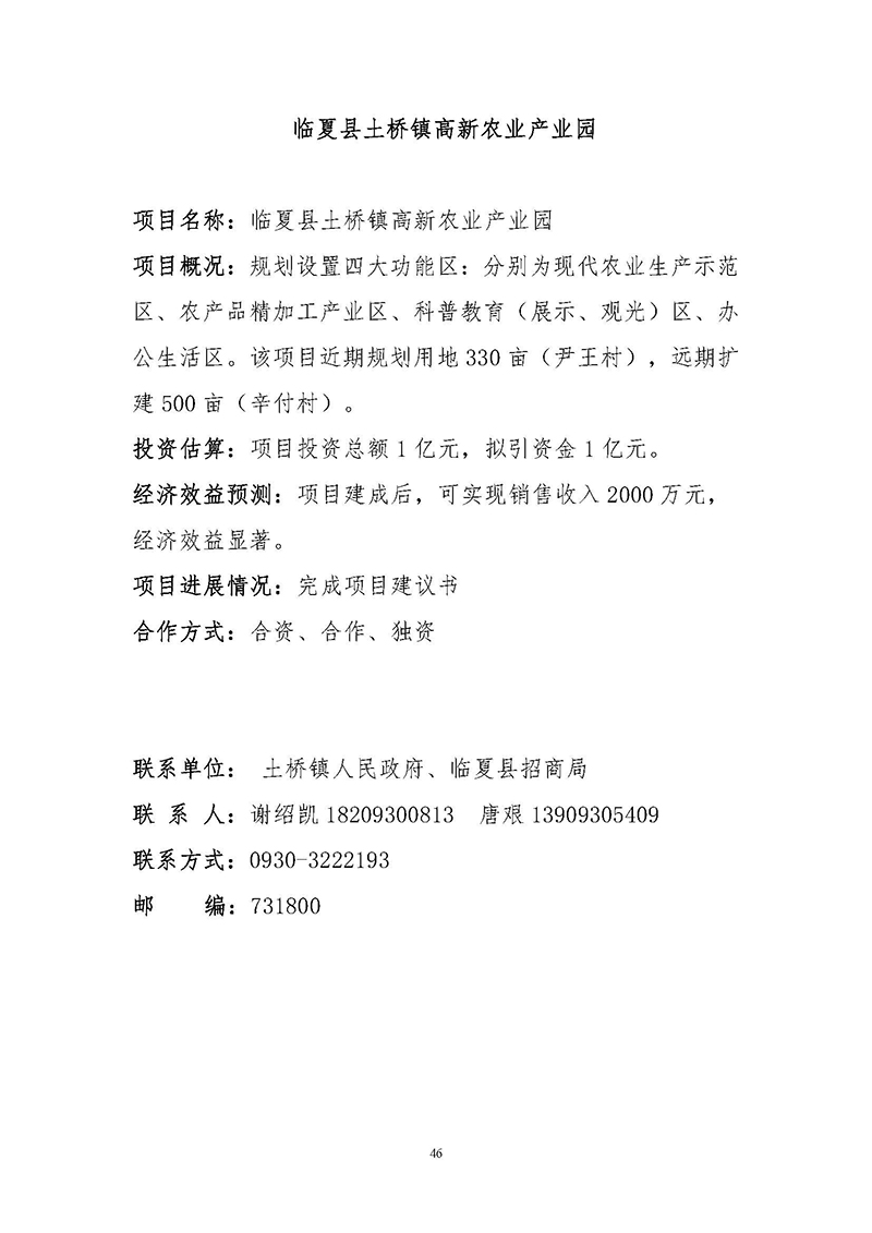 【临夏州临夏县】招商项目