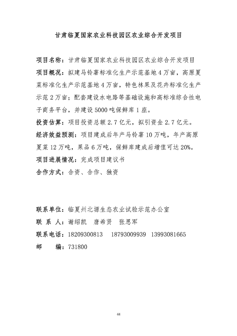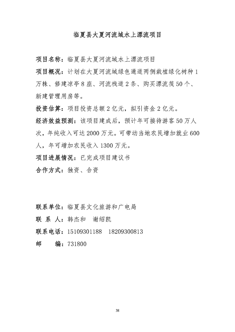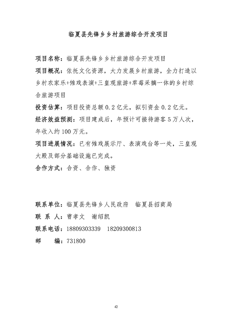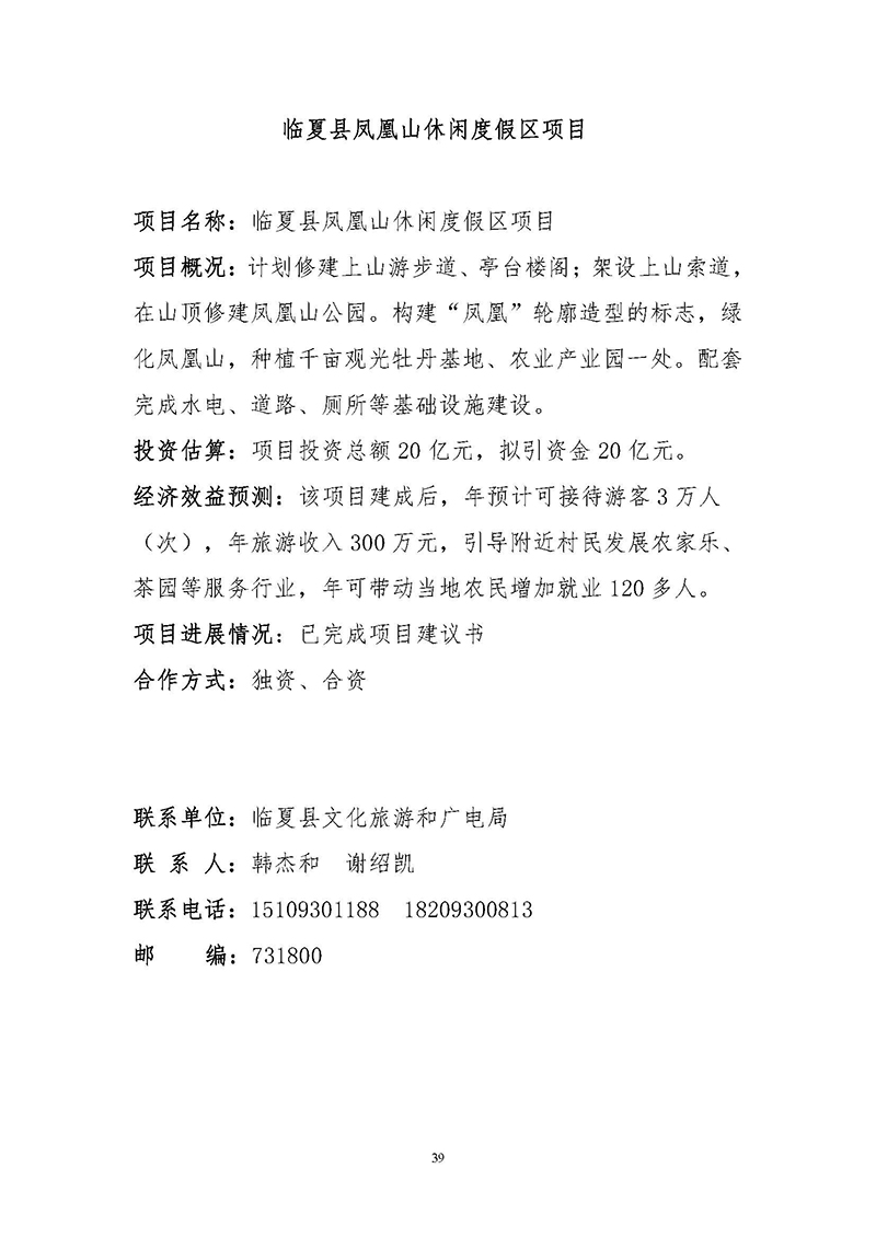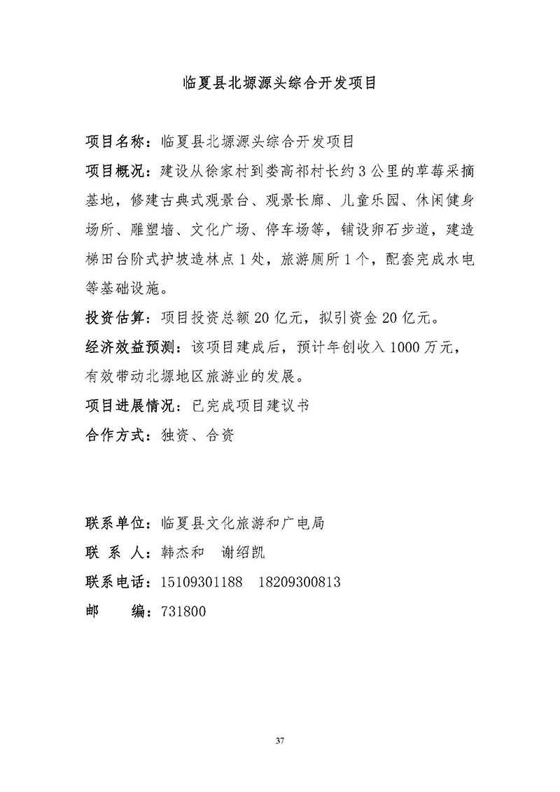 【临夏州临夏县】招商项目