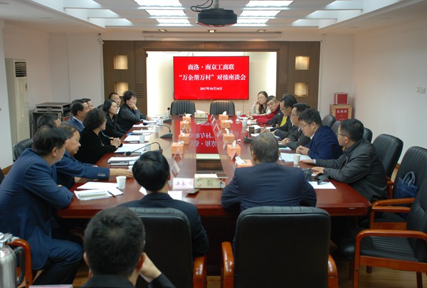 10月16日,商洛市副市长、市工商联主席周秀成率队到访南京市工商联,召开商洛.南京“万企帮万村”精准扶贫对接座谈会,并签订两会友好合作协议。中共南京市委统战部副部长、市工商联党组书记毛卫华主持会议,市工商联党组成员、副主席钱卫冰和南京部分民营企业家代表参与座谈与接待。