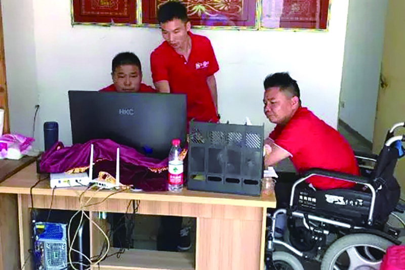 山西乐村淘网络科技有限公司做好农产品上行工作,开通国家级贫困县特色馆440个,成立乐村淘电商扶贫联盟工作小组,开展“一协议两台账”电商精准扶贫。图为乐村淘帮助贫困户残疾人创业