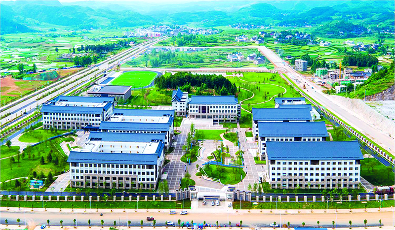 2014年底,万达集团响应习近平总书记号召,选择贵州省丹寨县作为帮扶对象,全国首创“企业包县、整县脱贫”的精准扶贫模式,捐款21亿元建设职业技术学院、丹寨旅游小镇、产业扶贫基金这三个扶贫项目。图为丹寨万达职业技术学院全景图