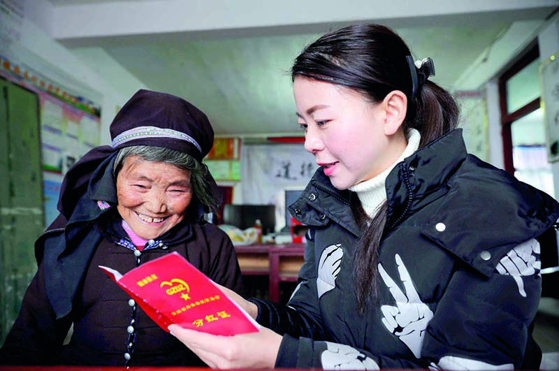 向村民讲解万达基金分红方式