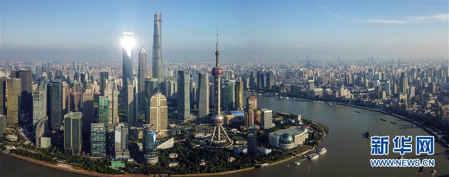 这是高楼林立的上海陆家嘴国际金融中心(6月21日无人机拍摄,拼接照片)。 新华社记者 殷刚 摄