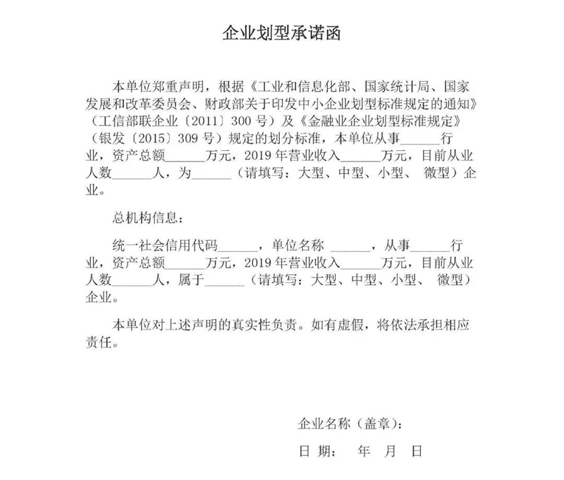(三)政策执行期内新设立或新参保的企业,在办理社会保险缴费登记时向主管税务机关报告从业人数、资产总额、总机构情况等信息并提交《企业划型承诺函》(见附件)作出划型承诺、由主管税务机关按照减免对象适用规则和分类标准进行分类。