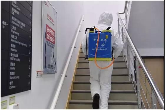 梁溪区的展鹏科技,复工复产之前已对厂区内各类场所做好杀菌消毒工作,确保复工后实行每日两次消杀。